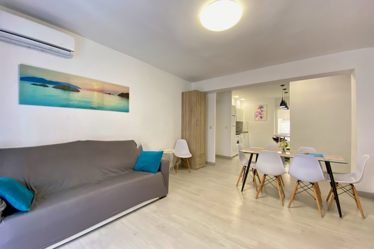 Este apartamento de 3 dormitorios, totalmente reformado y amueblado, se encuentra a solo 150 metros de la Playa del Acequión, en Torrevieja.
