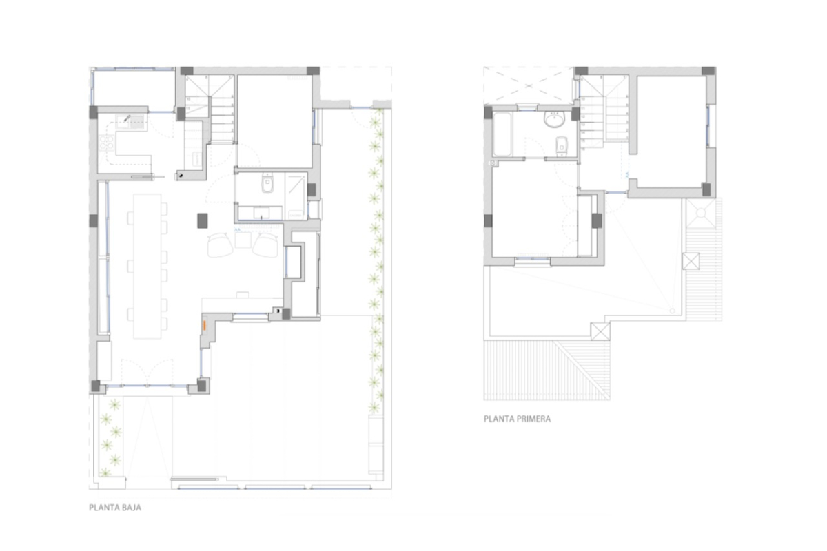 Entramos a la planta superior y encontramos dos dormitorios dobles y un baño con bañera. El dormitorio principal en la planta superior tiene baño en suite. En la planta superior encontramos una amplia terraza con vistas despejadas.