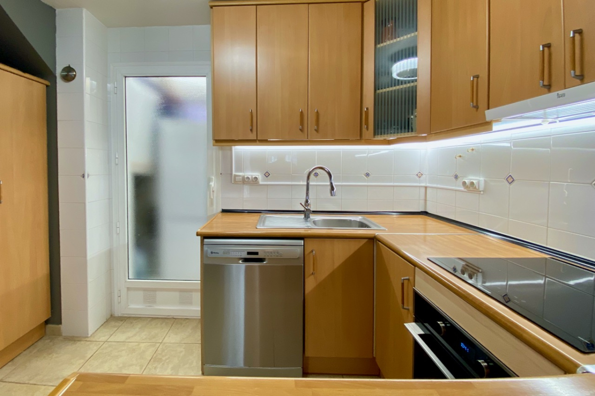 Al acceder al interior, encontramos el espacioso salón, completamente amueblado y equipado. El salón está conectado directamente con la cocina, que está totalmente equipada. Desde la cocina accedemos al lavadero, donde se encuentran la lavadora y la secadora.