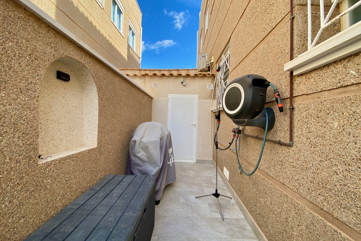 La casa cuenta con un práctico trastero en la terraza de la planta principal, donde podrá guardar sus artículos de playa o jardín.