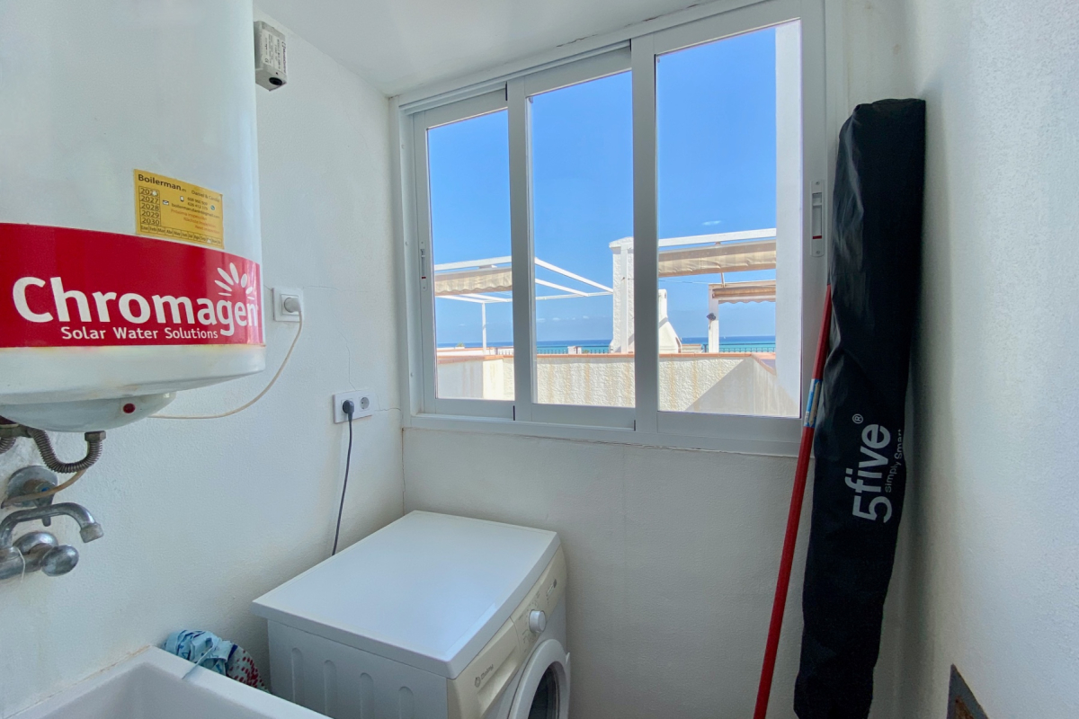 El apartamento tiene vistas a la zona común y se encuentra en la última planta. Acabados de estilo moderno y materiales de alta calidad en todo el apartamento. Un amplio salón con cocina abierta y balcón. Un lavadero independiente, 2 dormitorios y 2 modernos cuartos de baño. Escaleras desde el salón conducen a su azotea privada con espectaculares vistas al mar y mucho sol.