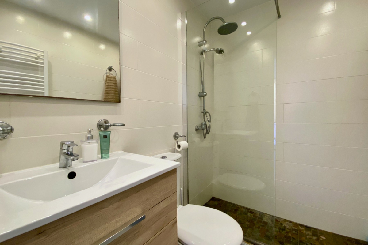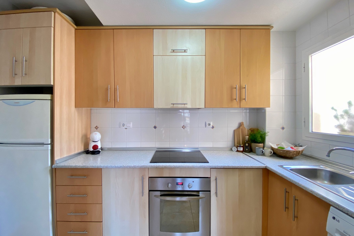 Además, en esta planta se encuentran dos luminosos dormitorios y un baño con ducha. Subiendo las escaleras desde el salón, se accede a la gran terraza privada en la azotea. Aquí podrá disfrutar del sol durante todo el día y de vistas panorámicas al mar Mediterráneo.