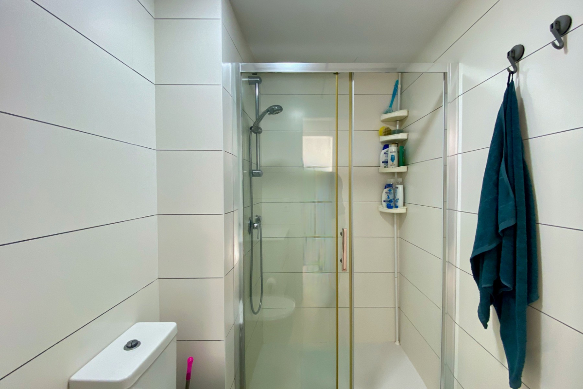 El segundo baño también cuenta con ducha y lavadora.