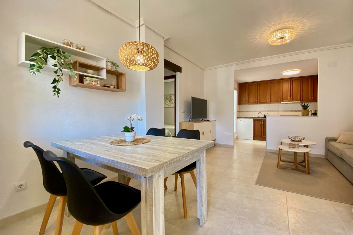 The large park located in the heart of Aguas Nuevas is just a few metres from the urbanisation with beautiful paths and open pedestrian streets. Just outside the urbanisation there are bus connections that take you to the centre of Torrevieja and other areas of the city. If you want to enjoy the Mediterranean, the famous La Mata beach is approximately 1 km from the property.
