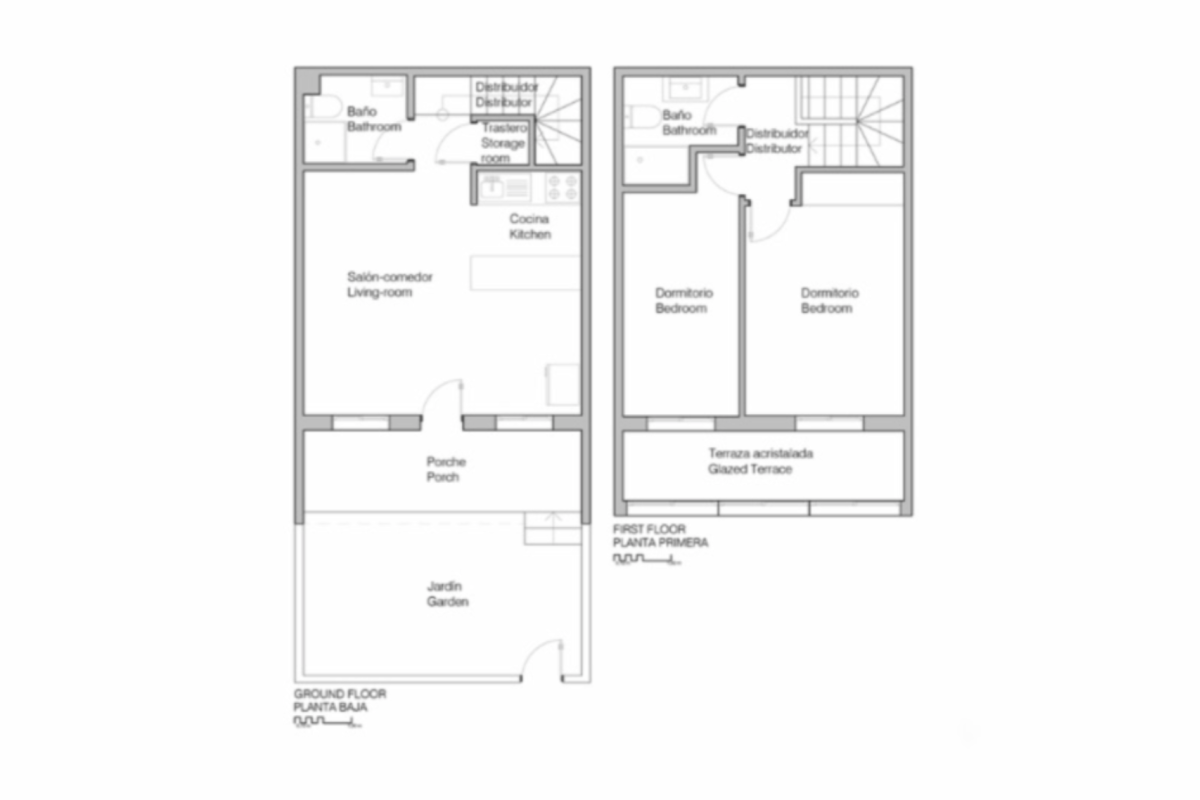 We access the second floor via the interior staircase, where we find 2 double bedrooms, both with direct access to the glazed terrace, and 1 bathroom with a shower.